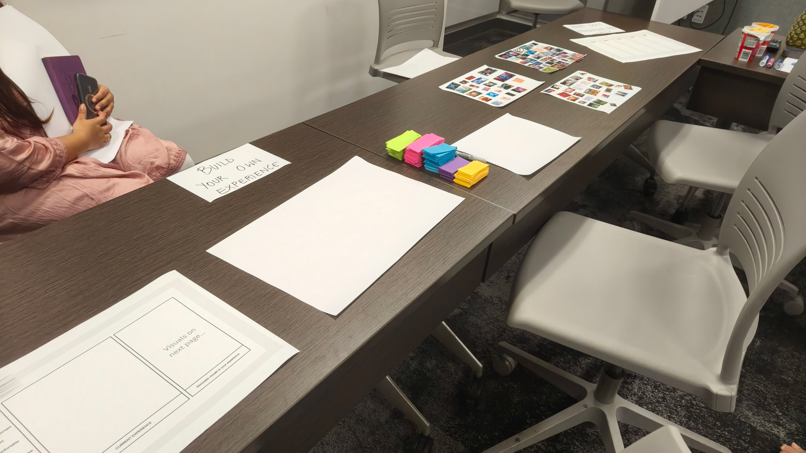 Workshop-based exercises where users attribute emotional values to sensory inputs. Participants used visual and tactile prompts to articulate the non-verbal, emotional factors of their ideal experience. We created a sensory cues workshop kit that was 4 stages of visual and tactile selection followed by a short but sharp interview to reveal the deeper connections with touch and feel of products and spaces.